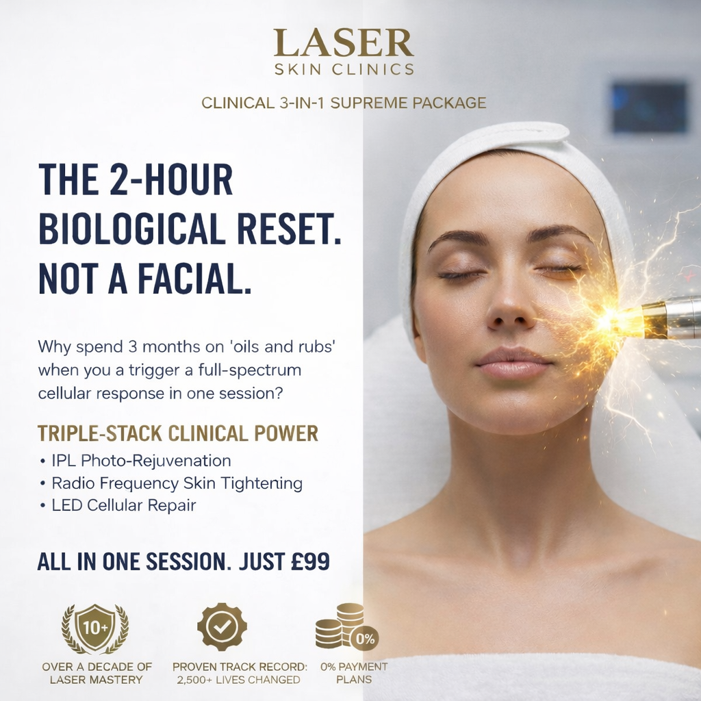 IPL (Intense Pulsed Light) is the gold standard for colour correction. We use precision light bursts to target uneven pigment (sun spots) and redness (broken capillaries) deep within the skin. The light energy breaks down this discoloration while simultaneously stimulating collagen production for a smoother surface.